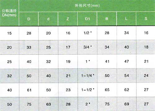 PPH管內(nèi)螺紋接頭主要連接尺寸(連接方式,熱熔承插)